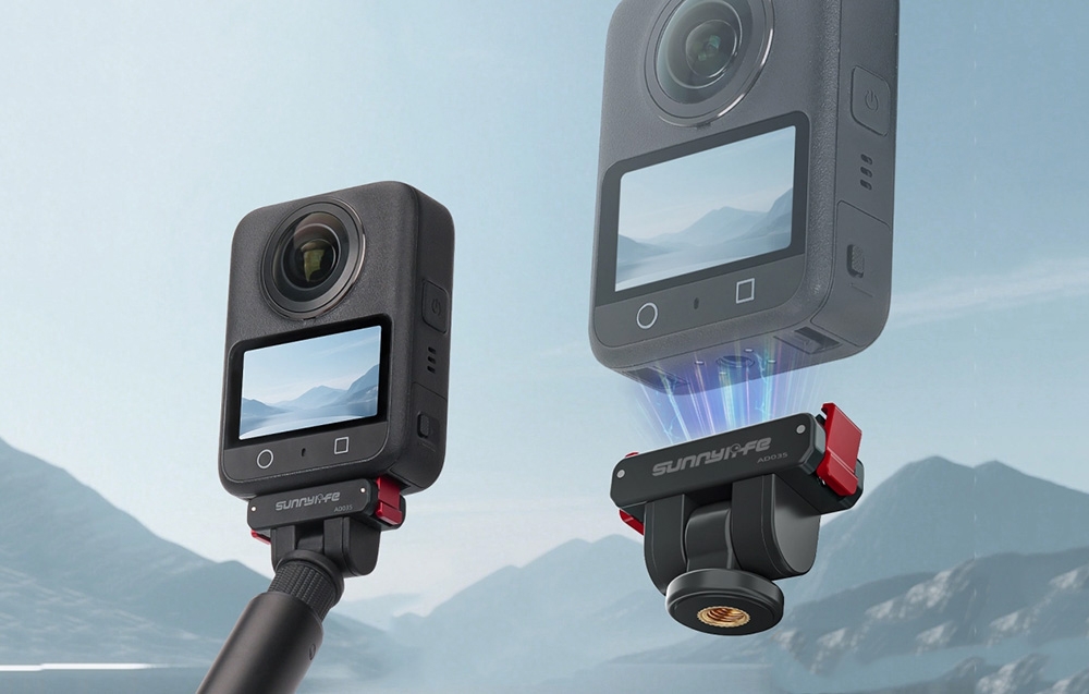 A Sunnylife AD035 mágneses adapter rögzítő kompatibilis az OSMO 360, Action 5 Pro és OSMO Action 4/3/2 sorozatú akciókamerákkal. Lehetővé teszi a 180°-os forgatást, így könnyedén beállíthatja a felvétel szögét a helyzetnek megfelelően. A CNC alumíniumszerkezet nagy tartósságot és biztos tartást biztosít a dinamikus terepi felvételek során. A beépített Double Locked mágneses rendszer védi a kamerát a véletlen lecsatlakozástól, biztosítva a biztonságot menet közbeni filmezés közben. Két nagy keménységű, 2-tűs alumíniumrúd stabil és biztonságos rögzítést nyújt, miközben a felszerelés gyorsan és egyszerűen felszerelhető. A Sunnylife adapter szabványos 1/4"-os menettel rendelkezik, így különböző kiegészítőkhöz - például szelfibotokhoz, állványokhoz vagy szerelőkarokhoz - csatlakoztatható. Ez egy sokoldalú megoldás a filmkészítők számára, akik különböző felszerelési konfigurációkat használnak a jelenet és a felvétel igényeinek megfelelően.