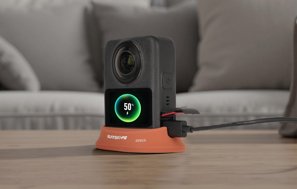 A tartozék lehetővé teszi a DJI Osmo 360 függőleges töltését, ami nem csak helyet takarít meg a pilótafülkében, de könnyű hozzáférést biztosít a képernyőhöz és a gombokhoz is. Az állapotjelző LED (fénykibocsátó dióda) okos kivágása lehetővé teszi a töltési folyamat valós idejű nyomon követését anélkül, hogy a kamerát kivenné a bölcsőből.