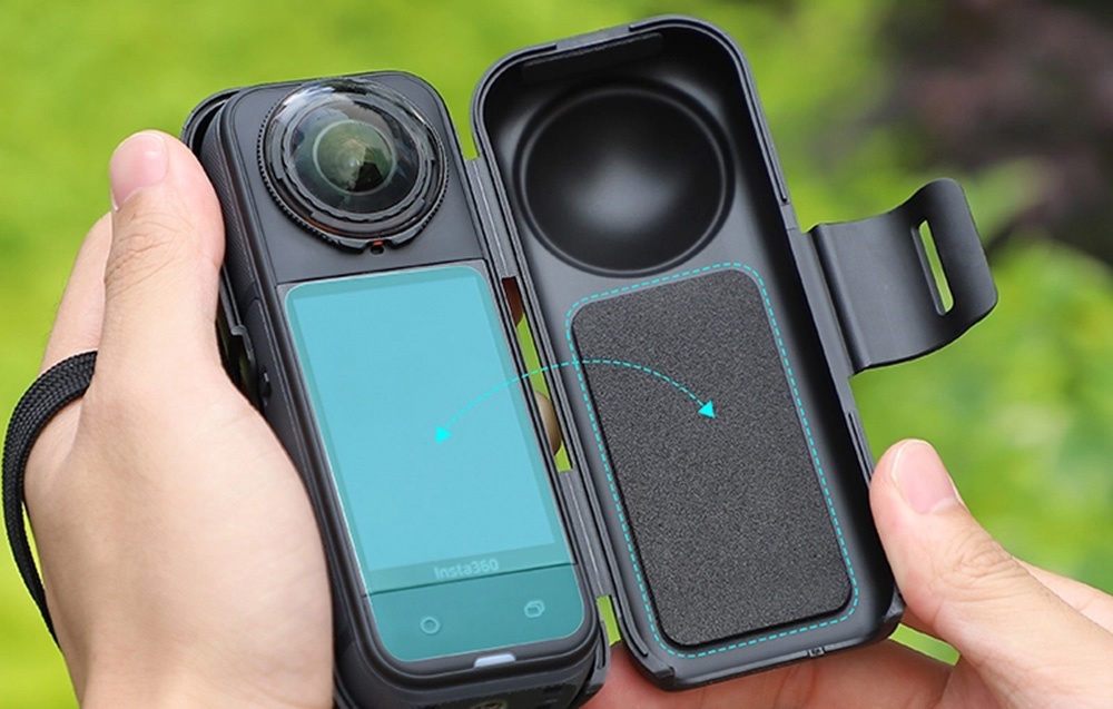 A Sunnylife K999 tokot kifejezetten az Insta360 X5 kamera megvédésére tervezték szállítás és a felvételek rövid szüneteiben. Az objektív és a képernyő védelmét egyesíti, miközben a nyitott aljú kialakításnak köszönhetően lehetővé teszi a tartozékok gyors csatlakoztatását.