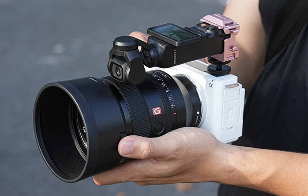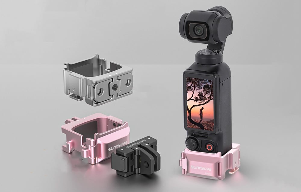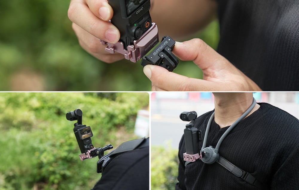 Teljes kompatibilitás a Sunnylife tartozékokkal: A Pocket 3 kameraadapter segítségével a Sunnylife AD824 adapter is csatlakoztatható, így több Sunnylife tartozékkal, például kerékpárrögzítővel is kompatibilis. A felvételi szög könnyen beállítható a boom kar használatával.