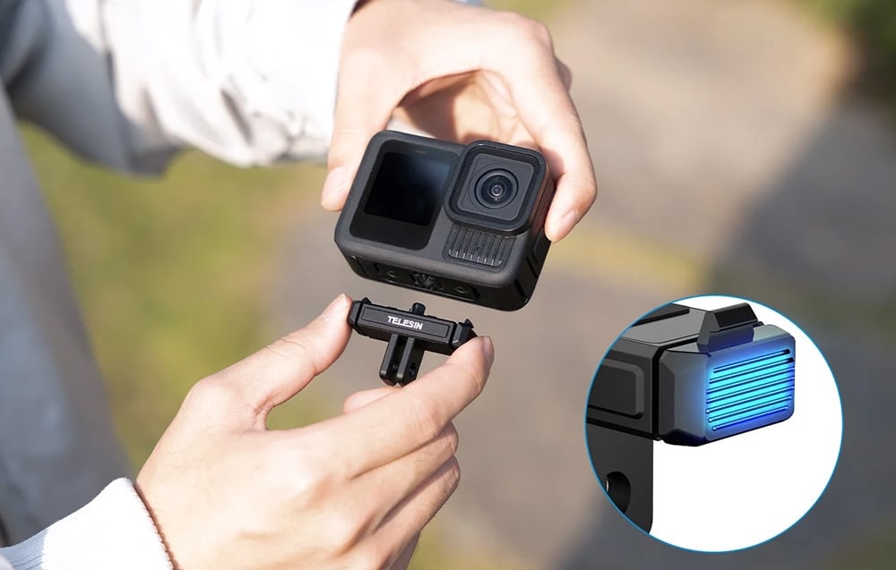A mágneses mechanizmuson és alumínium reteszelésen alapuló kettős biztonsági rendszer biztosítja a kamera tartós és megbízható rögzítését. Az alumíniumkapocs nagy dinamikus terhelés esetén is biztos tartást garantál.