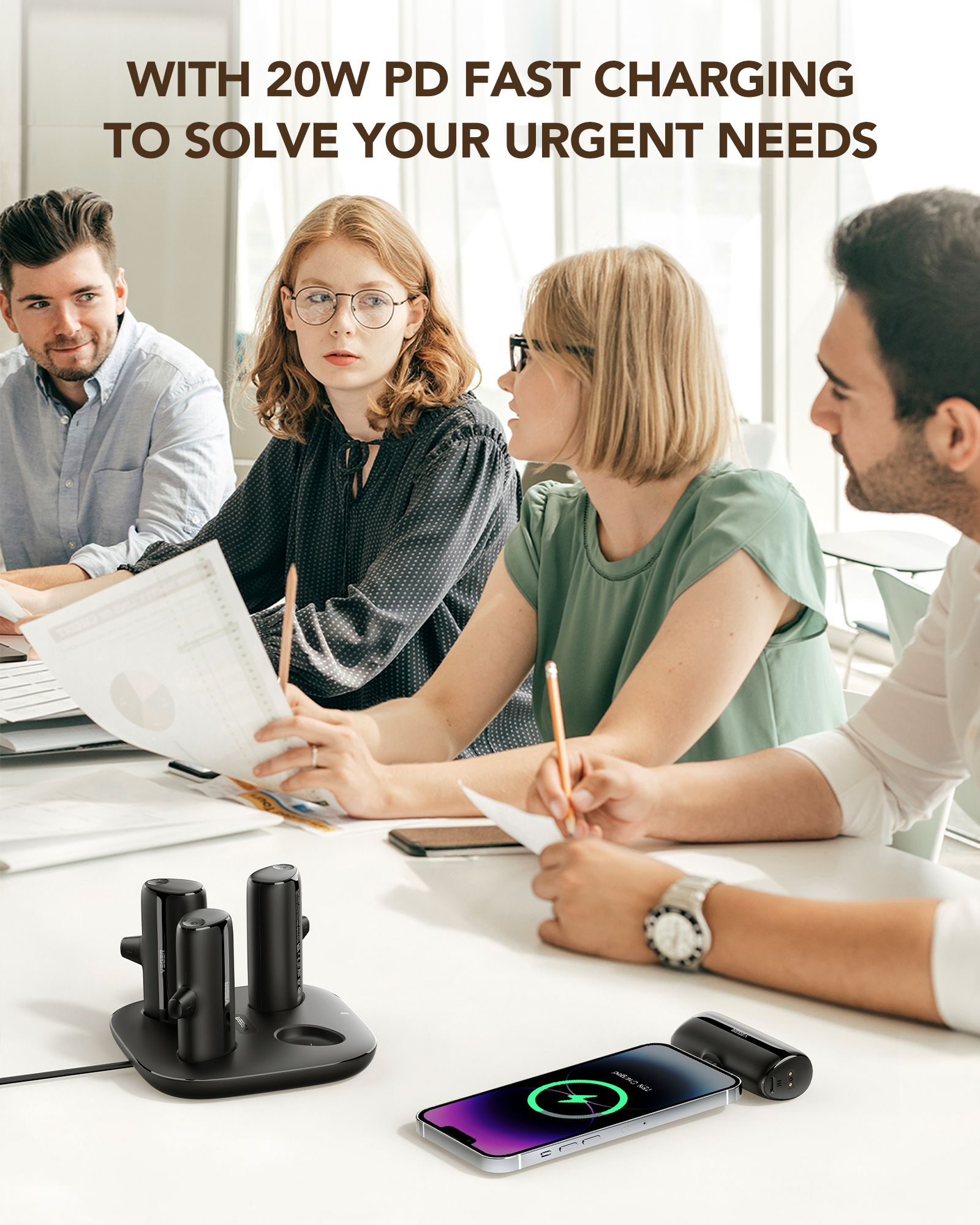 A VEGER POGO szett ideális választás családok, baráti társaságok vagy kollégák számára. Mivel négy különálló, de egy helyen tárolható és tölthető powerbankot tartalmaz, könnyedén megoszthatja az energiát bárkivel, akinek szüksége van rá. Legyen szó sürgős energiaigényről egy üzleti megbeszélésen, egy hotel recepcióján, egy kávézóban, vagy csak egy baráti összejövetelen, a VEGER POGO mindig a rendelkezésére áll, készen arra, hogy megoldja az azonnali töltési igényeket.